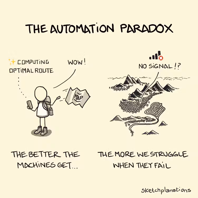 But this means we are becoming more and more dependent on technology. Once we get used to AI, it is hard to get back. This brings us to the Automation Paradox. The better and smarter our tools get, the more lost we find ourselves when they break down or behave unexpectedly. We use Copilot day in and day out, and we might forget to write a basic piece of code.